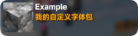 其中的 font.ttf 是自定义字体文件名,请把你的ttf字体文件改为 font.ttf ,并且放到/resourcepacks/Example/assets/minecraft/font文件夹下